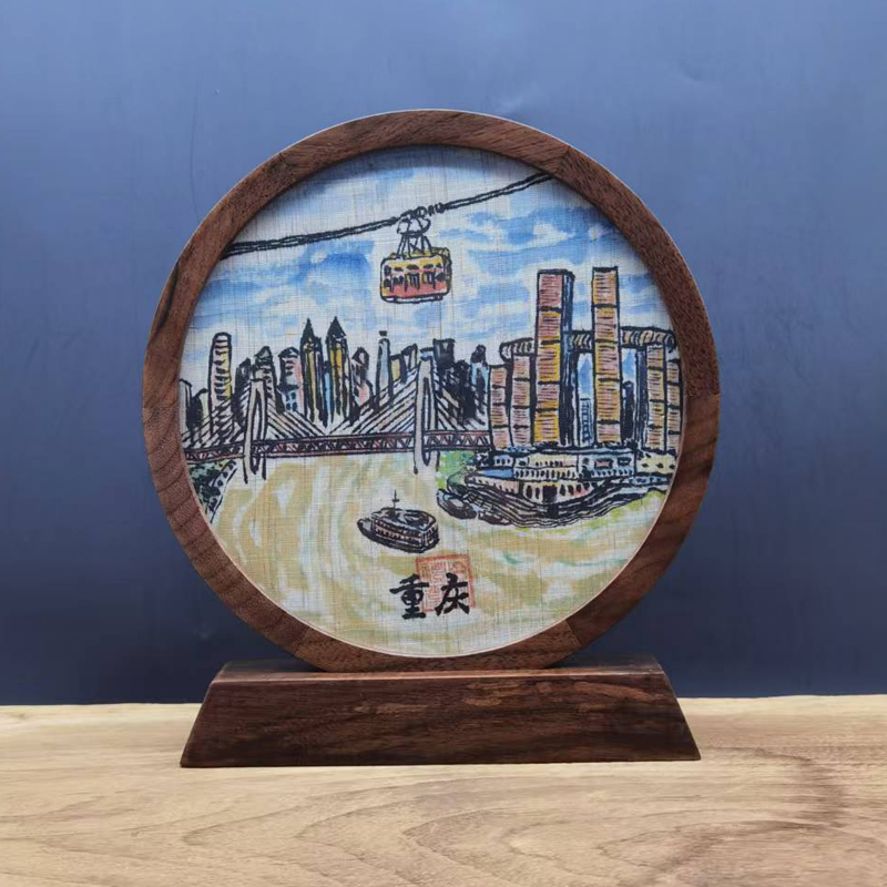 主题:来福士、长江索道、东水门大桥、洪崖洞、轻轨穿楼等 工艺:手工荣昌夏布,手绘图每件独品