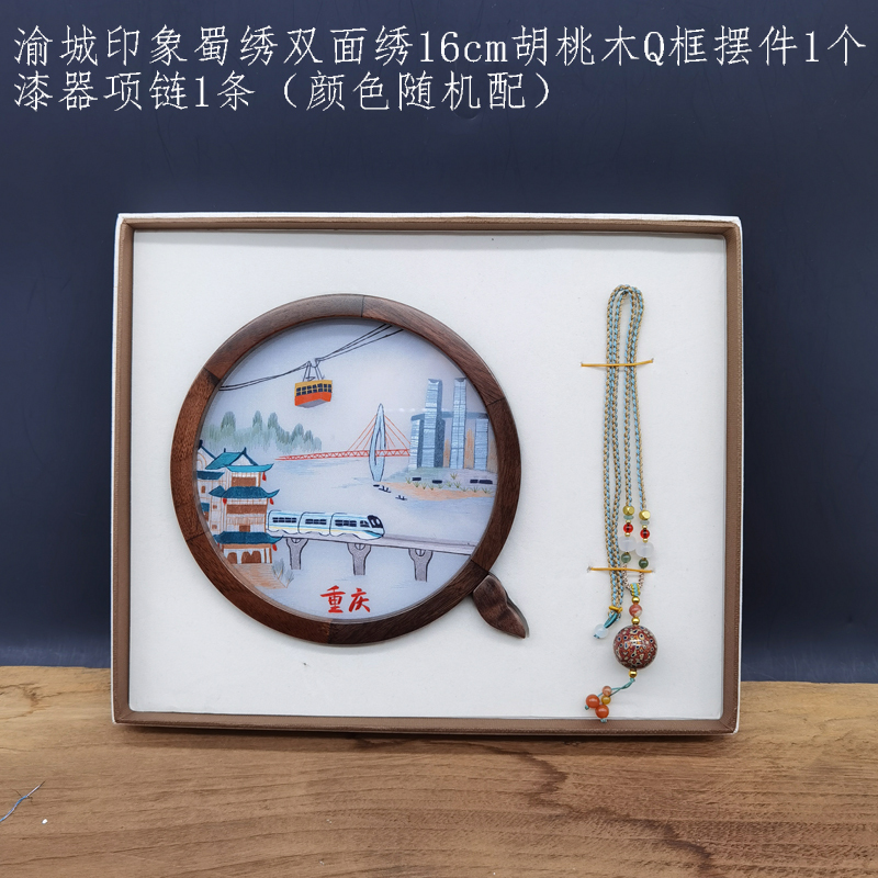 蜀绣渝城印象摆件+漆珠项链礼盒