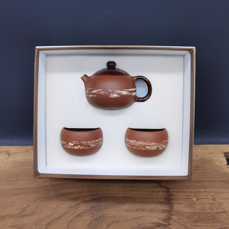 双非遗荣昌陶茶壶+绞泥主人杯2个