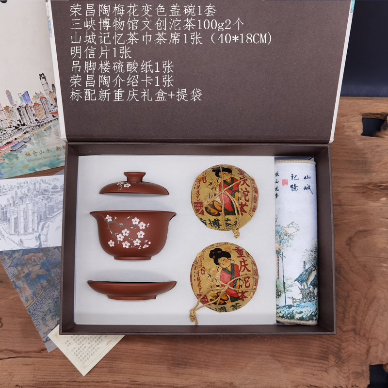 新礼盒荣昌陶变色盖碗+2个单沱礼盒